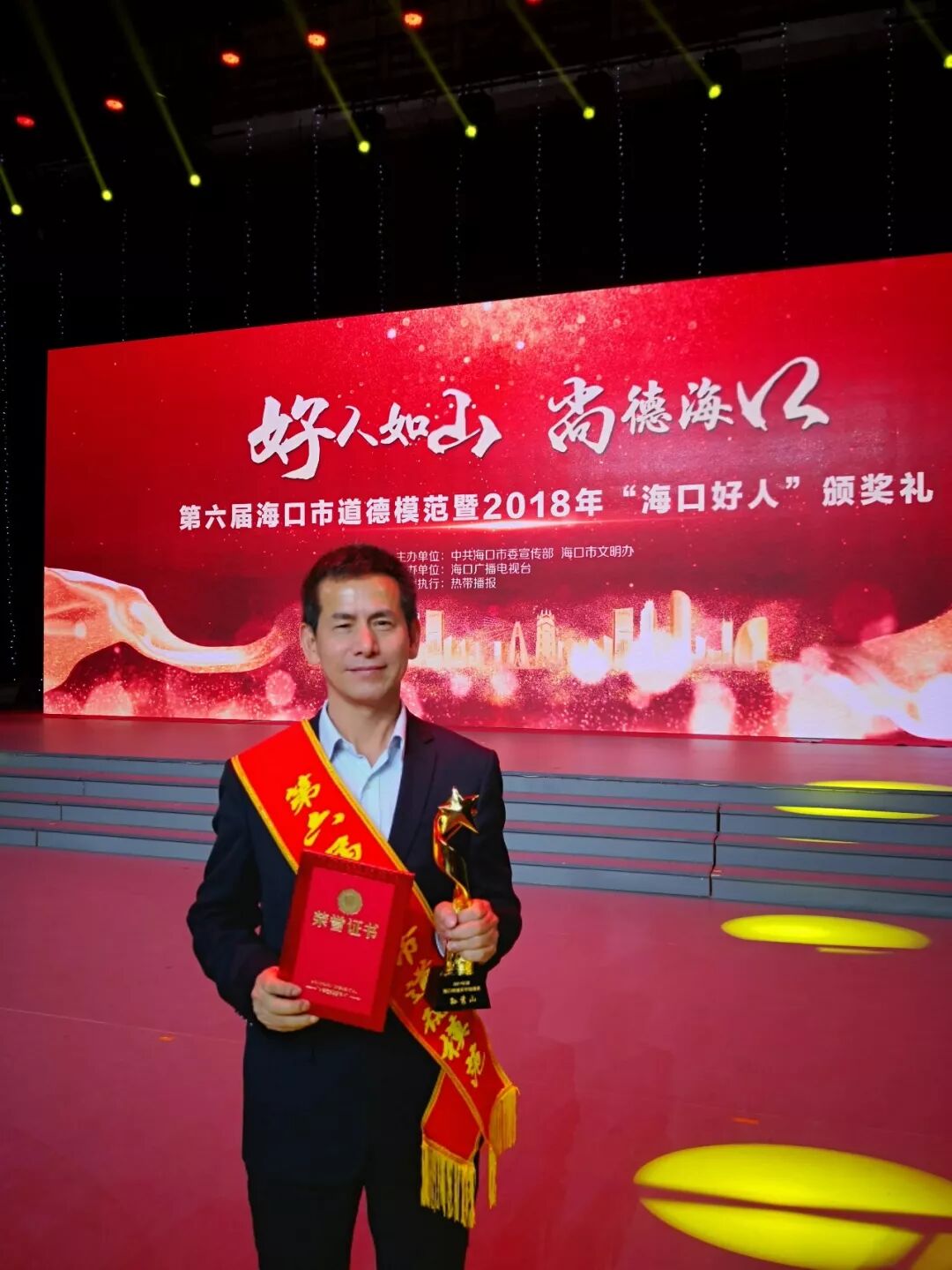 1月26號,“好人如山 尚德海口”第六屆海口市道德模范暨2018年“海口好人”頒獎禮在海口廣播電視臺舉行。海南省誠信企業協會常務副會長兼秘書長孫秀山榜上有名。
